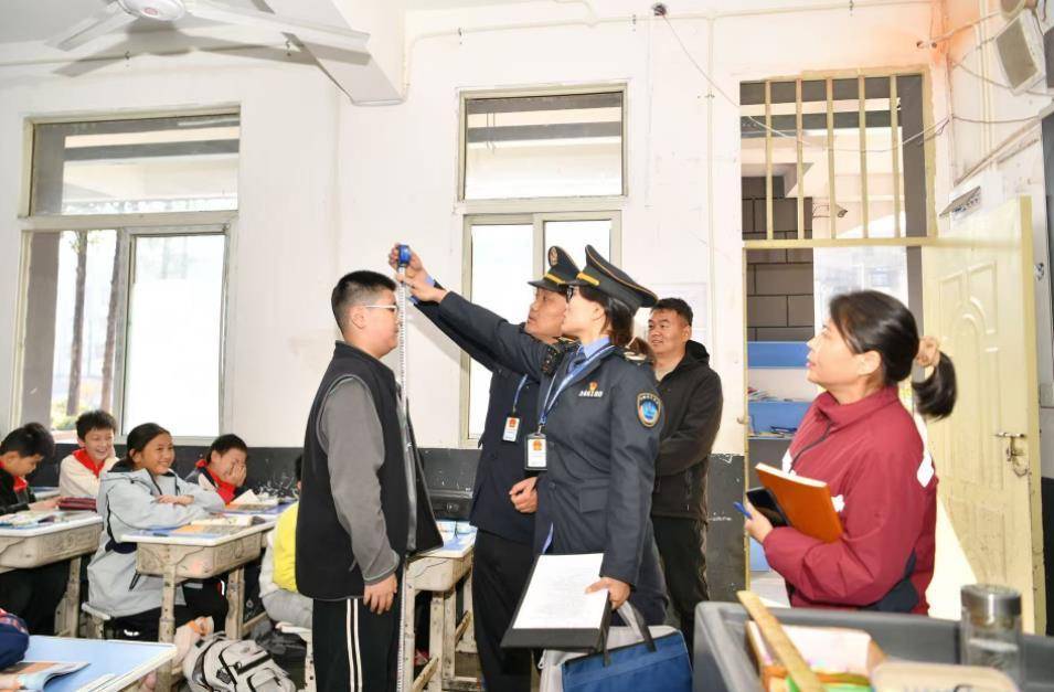 11月5日,阜南县卫生监督执法人员在城区一学校内对学生身高进行测量。当前正值冬季呼吸道传染病高发期,阜南县疾病预防控制中心组织卫生监督执法人员和疾控工作人员走进辖区中小学校,开展学校传染病防控检查股票配资,重点检查落实晨午检、预防性通风与消毒、因病缺勤病因追踪登记和教室照度、学生规范使用课桌椅等,保障广大师生身体健康。(吕乃明)